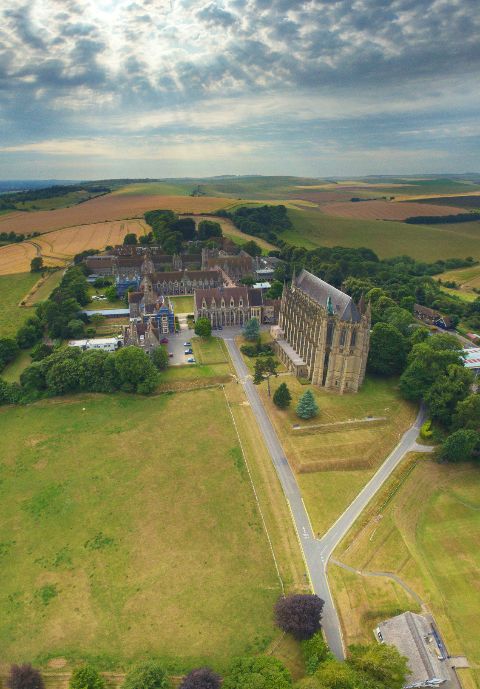 Lancing College está situado en la campiña de South Downs, en la costa sur de Inglaterra, a unos 20 minutos de Brighton y fue fundada en 1848. La escuela que se encuentra en una finca de 202 hectáreas tiene varios edificios de arquitectura tradicional destinados a aulas, residencia y actividades complementarias, rodeados de jardines y excelentes instalaciones deportivas. La capilla de más de 100 metros de altura está considerada como un tesoro arquitectónico.