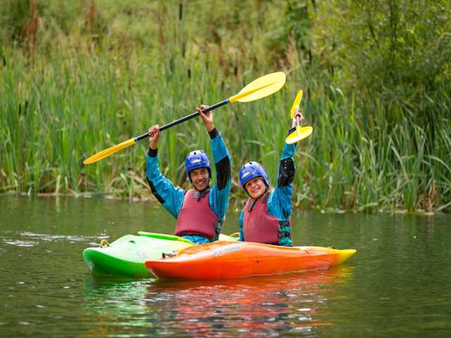 El centro de deportes acuáticos está en un lago dentro de la finca e incluye construcción de balsas, kayak y canoas.
